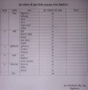 बैठक में जनपद के सभी ड्रोन संचालकों को 24 घंटे के भीतर अपने थाने पर उपस्थित होकर ड्रोन संचालन से सम्बंधित विवरण दर्ज कराने के निर्देश दिए गए। इसमें नाम, पता, मोबाइल नंबर, केंद्र/राज्य सरकार द्वारा निर्गत पहचान पत्र, ड्रोन पायलट पंजीकरण संख्या, ड्रोन का निर्माण एवं यूनिक आईडी संचालन क्षेत्र और उद्देश्य व्यावसायिक वाणिज्यिक अनुसंधान प्रशिक्षण आदि का विवरण शामिल करना अनिवार्य होगा।