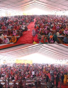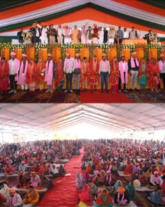 सिद्धार्थनगर 22 फरवरी 2026: मुख्यमंत्री सामूहिक विवाह योजना के अंतर्गत राजा रतन सेन डिग्री कॉलेज बांसी परिसर में भव्य सामूहिक विवाह समारोह का आयोजन किया गया। कार्यक्रम में मुख्य अतिथि के रूप में डुमरियागंज के सांसद जगदंबिका पाल विधायक बांसी जय प्रताप सिंह विधायक शोहरतगढ़ विनय वर्मा जिला पंचायत अध्यक्ष शीतल सिंह भाजपा जिलाध्यक्ष कन्हैया पासवान जिलाधिकारी शिव शरणप्पा जीएन पुलिस अधीक्षक अभिषेक महाजन एवं मुख्य विकास अधिकारी बलराम सिंह सहित अन्य जनप्रतिनिधि एवं अधिकारी उपस्थित रहे।कार्यक्रम का शुभारंभ दीप प्रज्ज्वलन एवं भगवान गणेश की प्रतिमा पर पुष्प अर्पित कर किया गया। कुल 384 पंजीकृत जोड़ों में से 321 जोड़े समारोह में शामिल हुए जिनमें 229 हिंदू 65 बौद्ध और 27 मुस्लिम समुदाय के जोड़े शामिल रहे। सभी का विवाह उनके-उनके धार्मिक रीति रिवाजों के अनुसार संपन्न कराया गया।