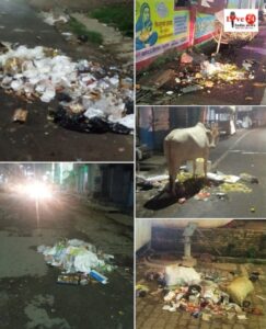 नगर पंचायत क्षेत्र में सफाई व्यवस्था की हकीकत सामने आ गई है। मुख्य बाज़ार और अस्पताल के पास सड़क पर जगह-जगह कचरे का अंबार देखने को मिला। हालत यह है कि मवेशी उसी कचरे को खाने को मजबूर हैं। इससे न केवल गंदगी और दुर्गंध फैल रही है बल्कि संक्रमण और बीमारियों का खतरा भी
